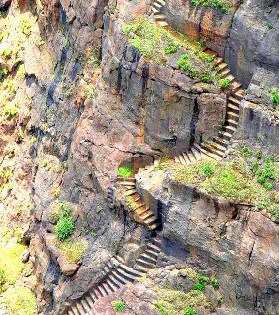 There is a series of steps leading to the top of the pinnacle, but little is known about the history of structure. According to local guides, it was built for a queen called Kalavantin in the 15th century, around the same time as the neighbouring Prabalgad. In Marathi language the word "Durg" means fort. Although it is called as "Kalavantin Durg", there is no fort. Kalavantin is a pinnacle which was used by the ruler to have watch on surrounding area.